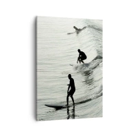 Cuadro sobre lienzo - Impresión de Imagen - Surfistas en las olas en una toma monocromática - 50x70cm - Al encuentro de la ola - Decoración de pared moderna para salón y dormitorio ARTTOR