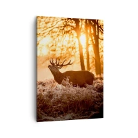 Cuadro sobre lienzo - Impresión de Imagen - Dos ciervos al atardecer en un paisaje invernal. - 50x70cm - El sueño de un cazador - Decoración de pared moderna para salón y dormitorio ARTTOR