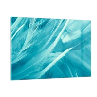 Cuadro sobre vidrio - Impresiones sobre Vidrio - Plumas turquesas en un delicado primer plano - 120x80cm - Un manto real - Decoración de pared moderna para salón y dormitorio ARTTOR