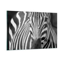Cuadro sobre vidrio - Impresiones sobre Vidrio - Retrato en blanco y negro de una cebra con rayas visibles. - 120x80cm - El mundo es blanco y negro - Decoración de pared moderna para salón y dormitorio ARTTOR