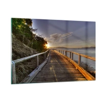 Cuadro sobre vidrio - Impresiones sobre Vidrio - Pasarela de madera al atardecer - 120x80cm - Camina, sigue caminando hacia el sol - Decoración de pared moderna para salón y dormitorio ARTTOR