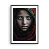 Póster en marco negro - Retrato de una niña con un chal rojo y ojos hipnotizantes. - 50x70cm - Princesa del Este - Decoración de pared moderna para salón y dormitorio ARTTOR