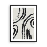 Póster en marco negro - Líneas negras abstractas sobre un fondo claro - 50x70cm - A medias - Decoración de pared moderna para salón y dormitorio ARTTOR