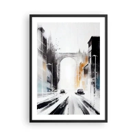 Póster en marco negro - Panorama abstracto de la ciudad con un arco monumental - 50x70cm - Estudio de la ciudad: arquitectura y movimiento - Decoración de pared moderna para salón y dormitorio ARTTOR