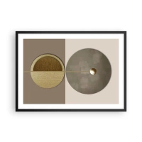 Póster en marco negro - Círculos abstractos en tonos dorados y beige. - 70x50cm - Equilibrio perfecto - Decoración de pared moderna para salón y dormitorio ARTTOR