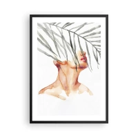 Póster en marco negro - Mujer de acuarela con hojas de palma cubriéndose la cara - 50x70cm - Siente el pulso de los trópicos - Decoración de pared moderna para salón y dormitorio ARTTOR