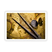 Póster - Un mapa del mundo antiguo con una brújula y un par de brújulas en el fondo. - 100x70cm - ¿Dónde están los tesoros? - Decoración de pared moderna para salón y dormitorio ARTTOR