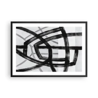 Póster en marco negro - Patrón de arte lineal abstracto en negro sobre un fondo claro - 70x50cm - El camino correcto - Decoración de pared moderna para salón y dormitorio ARTTOR