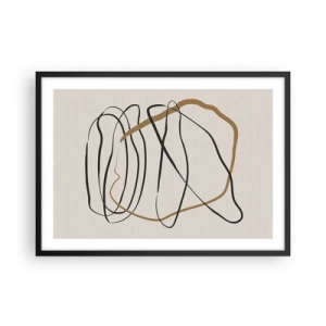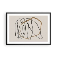 Póster en marco negro - Líneas artísticas en negro y dorado sobre un fondo claro. - 70x50cm - Composición: danza lineal - Decoración de pared moderna para salón y dormitorio ARTTOR