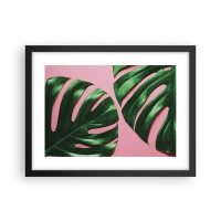 Póster en marco negro - Trópicos en rosa y azul - 40x30 cm