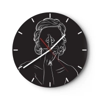 Reloj de pared - Reloj de vidrio - Un contorno blanco de una mujer con un dedo en la boca sobre un fondo negro. - 30x30cm - La belleza florece en silencio - Decoración de pared moderna para salón, cocina y dormitorio ARTTOR
