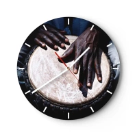 Reloj de pared - Reloj de vidrio - Primer plano de manos tocando un tambor tradicional - 30x30cm - Vive a tu ritmo - Decoración de pared moderna para salón, cocina y dormitorio ARTTOR