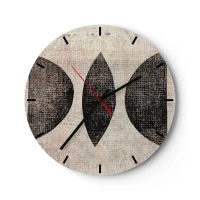 Reloj de pared - Reloj de vidrio - Formas geométricas negras sobre fondo beige con textura de lino. - 30x30cm - Abstracción étnica - Decoración de pared moderna para salón, cocina y dormitorio ARTTOR