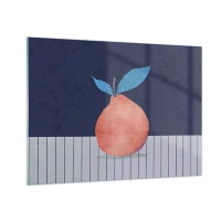 Cuadro sobre vidrio - Impresiones sobre Vidrio - Una fruta con forma abstracta frente a una composición geométrica. - 70x50cm - Convexidad y plano - Decoración de pared moderna para salón y dormitorio ARTTOR