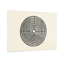Cuadro sobre vidrio - Impresiones sobre Vidrio - Un laberinto en blanco y negro en forma circular sobre un fondo claro. - 70x50cm - Orden misterioso - Decoración de pared moderna para salón y dormitorio ARTTOR