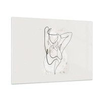 Cuadro sobre vidrio - Impresiones sobre Vidrio - Una silueta femenina dibujada con una línea sobre un fondo claro. - 100x70cm - El arte de la seducción - Decoración de pared moderna para salón y dormitorio ARTTOR