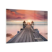 Cuadro sobre vidrio - Impresiones sobre Vidrio - Muelle de madera que conduce a los miradores junto al agua al atardecer - 100x70cm - De este a oeste - Decoración de pared moderna para salón y dormitorio ARTTOR