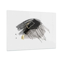 Cuadro sobre vidrio - Impresiones sobre Vidrio - Composición abstracta de negro y dorado sobre un fondo blanco. - 100x70cm - En negro y dorado - Decoración de pared moderna para salón y dormitorio ARTTOR