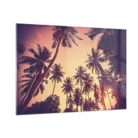 Cuadro sobre vidrio - Impresiones sobre Vidrio - Palmeras bajo los rayos del sol poniente - 100x70cm - Variante tropical - Decoración de pared moderna para salón y dormitorio ARTTOR