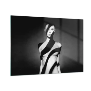 Cuadro sobre vidrio - Impresiones sobre Vidrio - Retrato en blanco y negro de una mujer con sombras llamativas. - 100x70cm - En la luz y en la sombra - Decoración de pared moderna para salón y dormitorio ARTTOR