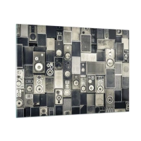 Cuadro sobre vidrio - Impresiones sobre Vidrio - Una composición de altavoces retro en tonos grises. - 100x70cm - Y todo fluye - Decoración de pared moderna para salón y dormitorio ARTTOR