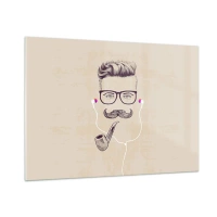 Cuadro sobre vidrio - Impresiones sobre Vidrio - Un dibujo de un hombre estilizado con gafas, bigote y pipa. - 100x70cm - Moda masculina - Decoración de pared moderna para salón y dormitorio ARTTOR