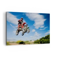 Cuadro sobre lienzo - Impresión de Imagen - Pilotos de motocross en el aire durante un salto - 70x50cm - Salto del cielo - Decoración de pared moderna para salón y dormitorio ARTTOR
