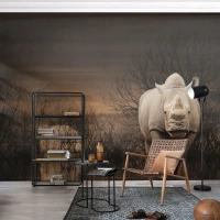 Fotomural Autadhesivo Deluxe Sticker - El blanco contra la naturaleza - Rinoceronte, animales, África - 300x210 cm