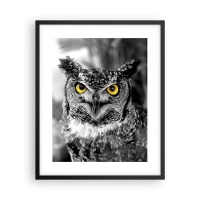 Cuadro sobre lienzo - Impresión de Imagen - Una fotografía en blanco y negro de un búho con ojos amarillos. - 100x70cm - Nada se puede ocultar - Decoración de pared moderna para salón y dormitorio ARTTOR
