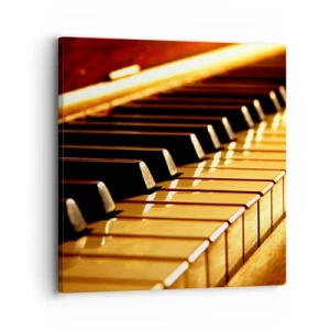 Cuadro sobre lienzo - Impresión de Imagen - Teclado de piano con iluminación dorada - 50x70cm - Posibilidades ilimitadas - Decoración de pared moderna para salón y dormitorio ARTTOR