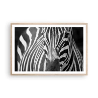 Cuadro sobre lienzo - Impresión de Imagen - Un primer plano en blanco y negro de una cebra con sus distintivas rayas. - 70x100cm - El mundo es blanco y negro - Decoración de pared moderna para salón y dormitorio ARTTOR