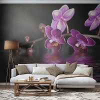 Fotomural Premium Sand - Un reflejo lila de la belleza - flores, Orquídea, Naturaleza - 450x315 cm