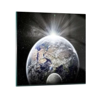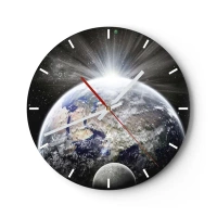 Reloj de pared - Reloj de vidrio - Vista de la Tierra al amanecer en el espacio exterior - 30x30cm - En todo su esplendor - Decoración de pared moderna para salón, cocina y dormitorio ARTTOR