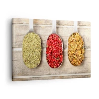 Cuadro sobre lienzo - Impresión de Imagen - Tres cucharas de metal con especias sobre un fondo de madera. - 120x80cm - La magia de la cocina - Decoración de pared moderna para salón y dormitorio ARTTOR
