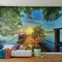 Fotomural Premium Sand - Atardecer junto al agua - Paisaje, Lago, Velero - 400x280 cm