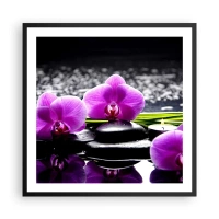 Cuadro sobre vidrio - Impresiones sobre Vidrio - Orquídeas moradas con piedras y velas sobre un fondo de agua. - 100x70cm - Ahogarse en la paz y la tranquilidad - Decoración de pared moderna para salón y dormitorio ARTTOR
