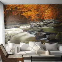 Fotomural Premium Sand - Un arroyo en un bosque dorado - Paisaje, Bosque, Arroyo de montaña - 450x315 cm