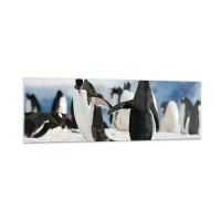 Cuadro sobre vidrio - Impresiones sobre Vidrio - Un grupo de pingüinos en la nieve en un paisaje antártico. - 160x50cm - Bailando en la nieve - Decoración de pared moderna para salón y dormitorio ARTTOR