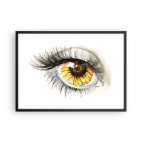 Póster en marco negro - Ojo artístico con iris en forma de girasol. - 70x50cm - Un aspecto tan caluroso como el verano - Decoración de pared moderna para salón y dormitorio ARTTOR