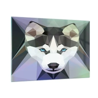 Cuadro sobre vidrio - Impresiones sobre Vidrio - Geometría del lobo en un estilo moderno - 100x70cm - El recuerdo de las nieves del norte - Decoración de pared moderna para salón y dormitorio ARTTOR