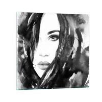 Cuadro sobre vidrio - Impresiones sobre Vidrio - Retrato de una dama en blanco y negro - 30x30 cm