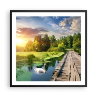 Cuadro sobre vidrio - Impresiones sobre Vidrio - Un paisaje pintoresco con un puente y un cisne. - 140x50cm - Verano, verano en todas partes - Decoración de pared moderna para salón y dormitorio ARTTOR