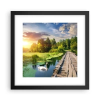 Reloj de pared - Reloj de vidrio - Un paisaje pintoresco con un puente y un cisne. - 30x30cm - Verano, verano en todas partes - Decoración de pared moderna para salón y dormitorio ARTTOR