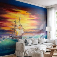Fotomural Premium Sand - Un velero en un mar tempestuoso al atardecer - 100x70cm - Valientemente surcando las olas - Decoración de pared moderna para salón y dormitorio ARTTOR