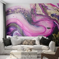Fotomural Standard Eco - Composición abstracta de morado y dorado. - 100x70cm - Un momento abstracto - Decoración de pared moderna para salón y dormitorio ARTTOR
