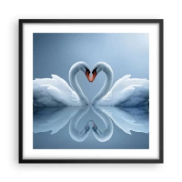 Cuadro sobre lienzo - Impresión de Imagen - Dos cisnes formando un corazón en una superficie tranquila del agua. - 100x70cm - Tiempo de amor - Decoración de pared moderna para salón y dormitorio ARTTOR
