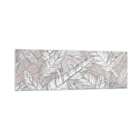 Cuadro sobre vidrio - Impresiones sobre Vidrio - Patrón en blanco y negro con hojas de plátano sobre un fondo claro. - 160x50cm - Turbulencias de plumas - Decoración de pared moderna para salón y dormitorio ARTTOR