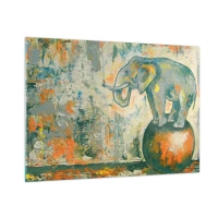 Cuadro sobre vidrio - Impresiones sobre Vidrio - Elefante abstracto en equilibrio sobre una pelota - 100x70cm - ¡Viva el circo! - Decoración de pared moderna para salón y dormitorio ARTTOR