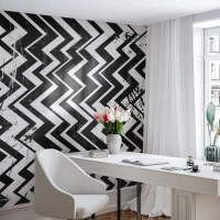 Fotomural Autadhesivo Deluxe Sticker - Zig-blanco, zag-negro - Abstracción, Pedazo, En blanco y negro - 200x140 cm