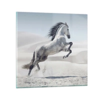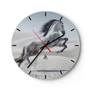 Reloj de pared - Reloj de vidrio - Un caballo blanco galopando con las dunas del desierto como telón de fondo. - 30x30cm - Un príncipe árabe - Decoración de pared moderna para salón y dormitorio ARTTOR